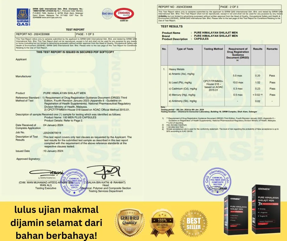 Sila rujuk label produk rasmi untuk status kelulusan dan pengesahan KKM. SHILAJIT100MEN lulus KKM.